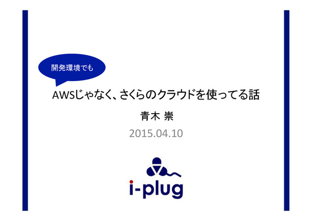 AWSじゃなく、さくらのクラウドを使ってる話 2015.04.10 青木 崇 開発環境でも