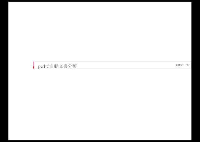 “エンターテイメ ント”); foreach my $category_name(@category) { # 本当は特徴語を保存したファイルから # my %wordcount= ( “小沢” => 51 , “鳩山” => 24 , “沖縄" => 81, ….. ); my $bayes = Algorithm::NaiveBayes->new; $bayes->add_instance( attributes => %wordcount, label => $category_name, ); } # 学習を実行 $bayes->train;