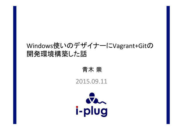 Windows使いのデザイナーにVagrant+Gitの 開発環境構築した話 2015.09.11 青木 崇