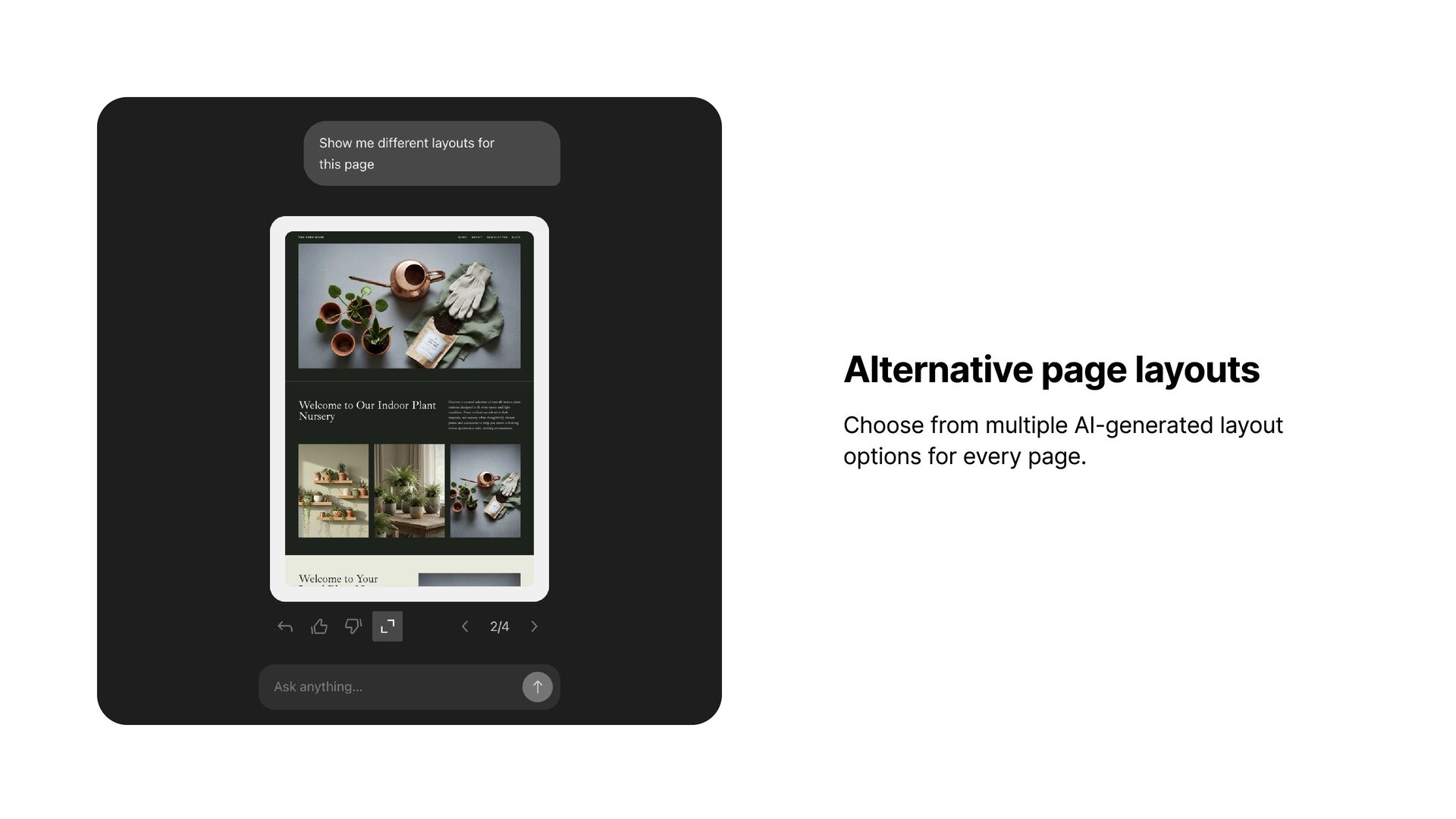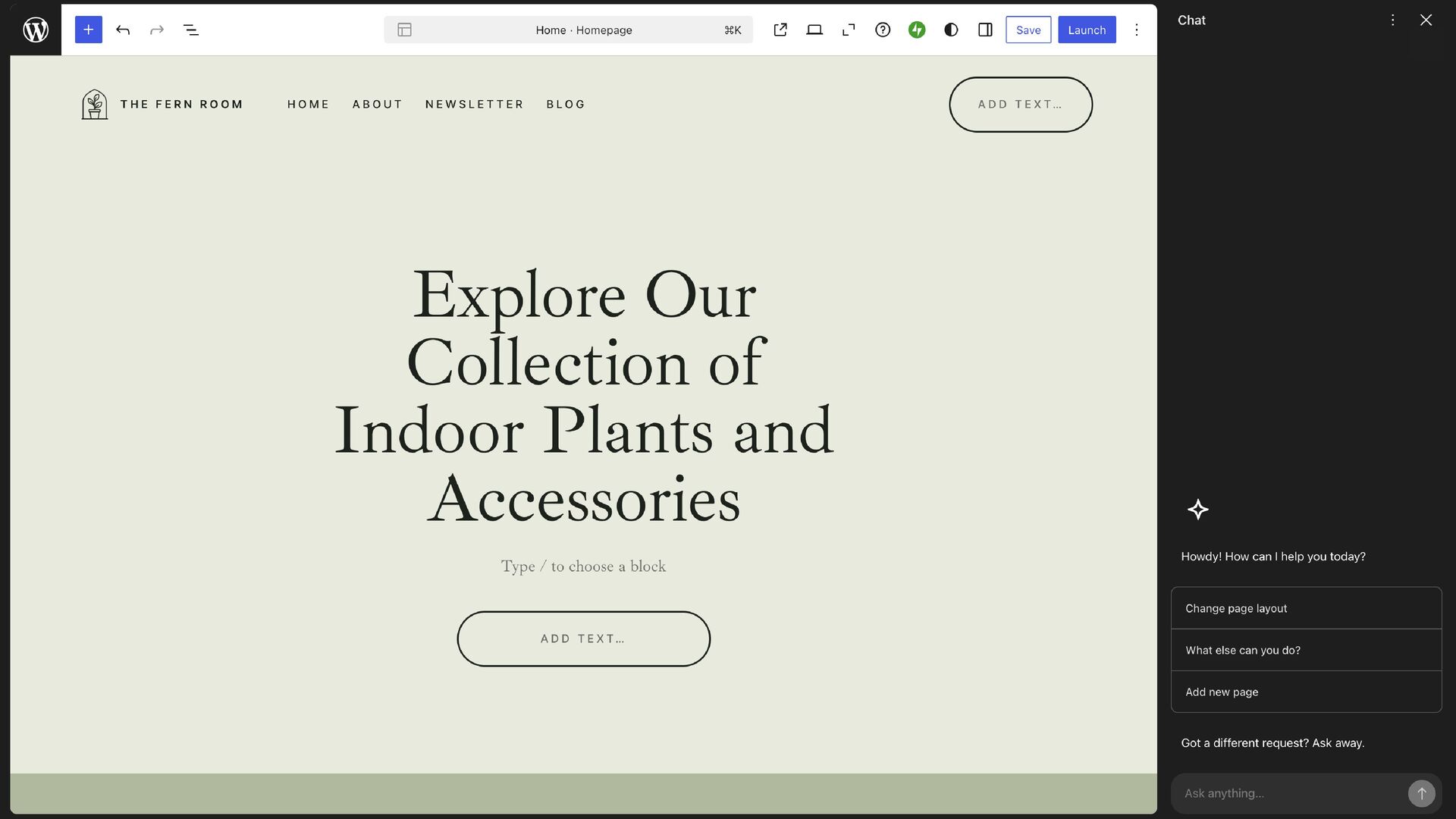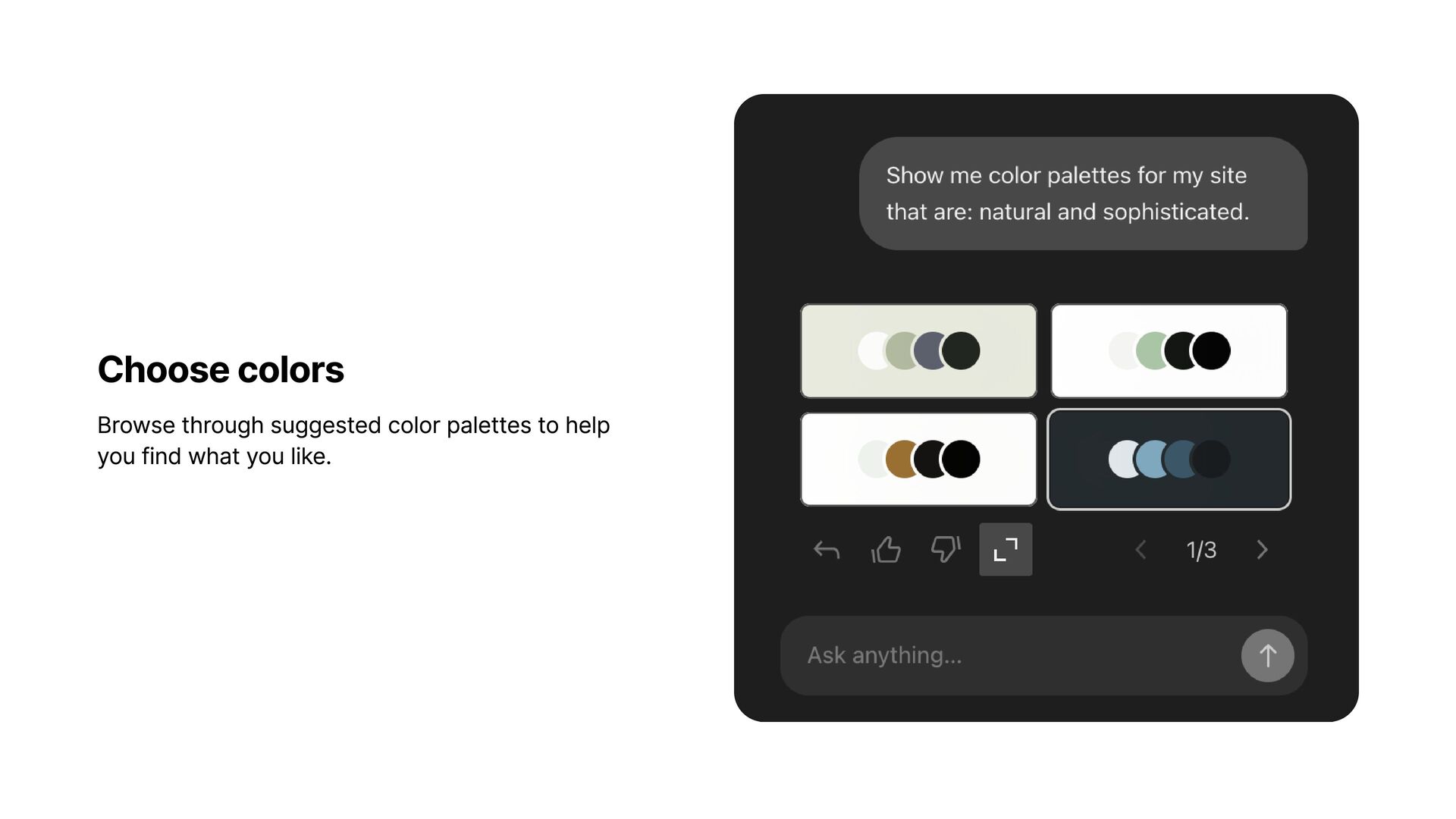 the basics Business type, what you sell, average price, catalog size, audience, region. Specify Essential Features Hero section, 5 menu items, newsletter and social links in Footer. List pages upfront Home, Shop, Product, About, Contact, FAQ, Blog, Policies. Be concrete “Grid layout, product cards with ratings and price” over “make it beautiful.” Describe Y our Desired Style Layout preference, color and font vibe (modern serif, clean sans), imagery style. Use refinement prompts after generation “shorten the hero,” “add Shipping and Returns to footer,” “generate 5 H2s for Blog.”