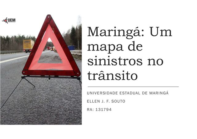 material disponível no site da prefeitura revela um panorama preocupante sobre os sinistros de trânsito com vítimas fatais no perímetro urbano de Maringá, com dados detalhados desde 1998. Neste estudo será analisado somente registros de acidentes de trânsito ocorridos em vias urbanas da cidade de Maringá que tem como fonte 4º batalhão. Nota:* A partir de maio de 2009, a Av. Colombo passa a ser fiscalizada pela Policia Rodoviária Federal, deixando de entrar nas estatísticas do 4º Batalhão. https://www3.maringa.pr.gov.br/semob/fiscalizacao/estatisticas Ellen J. F. Souto RA:131794