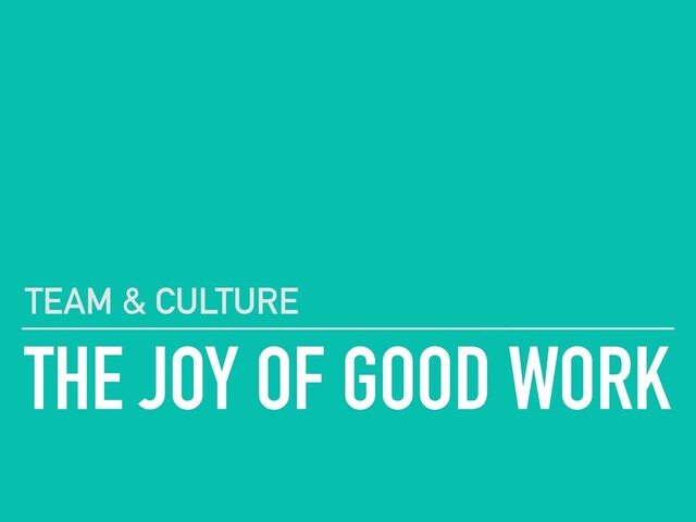sense of fulfillment that results from meaningful work ▸ Allows each one of us to contribute our best to the team ▸ Fostered by a work culture that enables and inspires us to participate and take the company’s vision even further