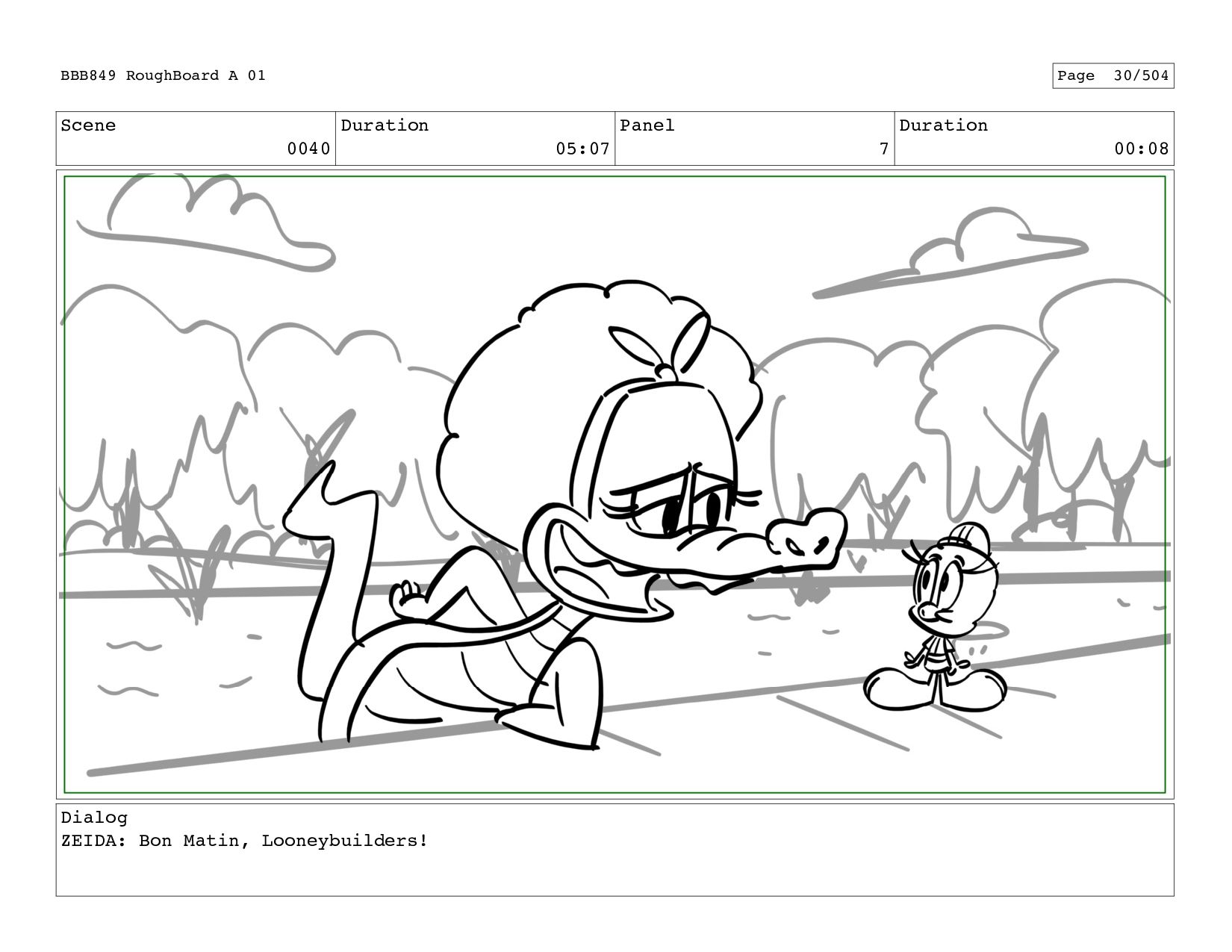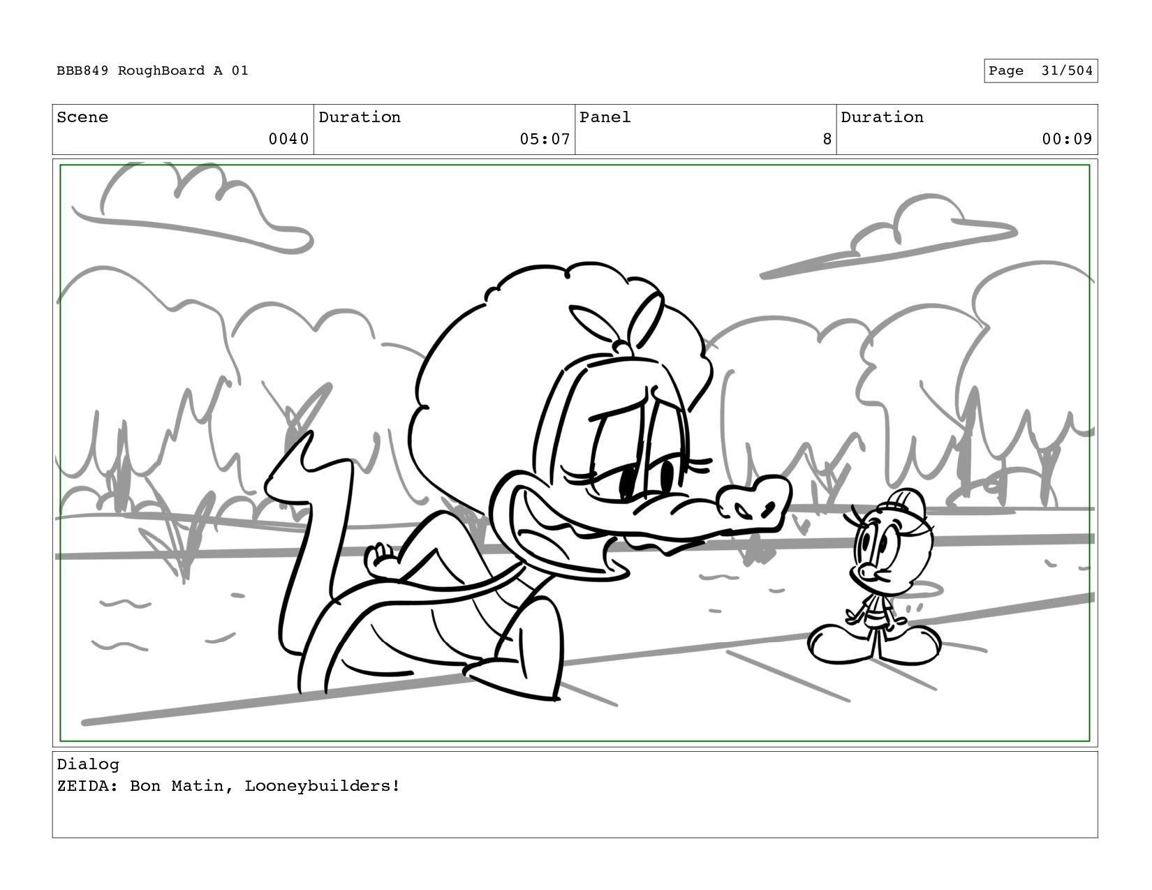 The Looney Builders meet their client Zeyda the Alligator. This is an excerpt from the 11-minute long episode I storyboarded for the show Bugs Bunny Builders for Warner Bros. Animation.