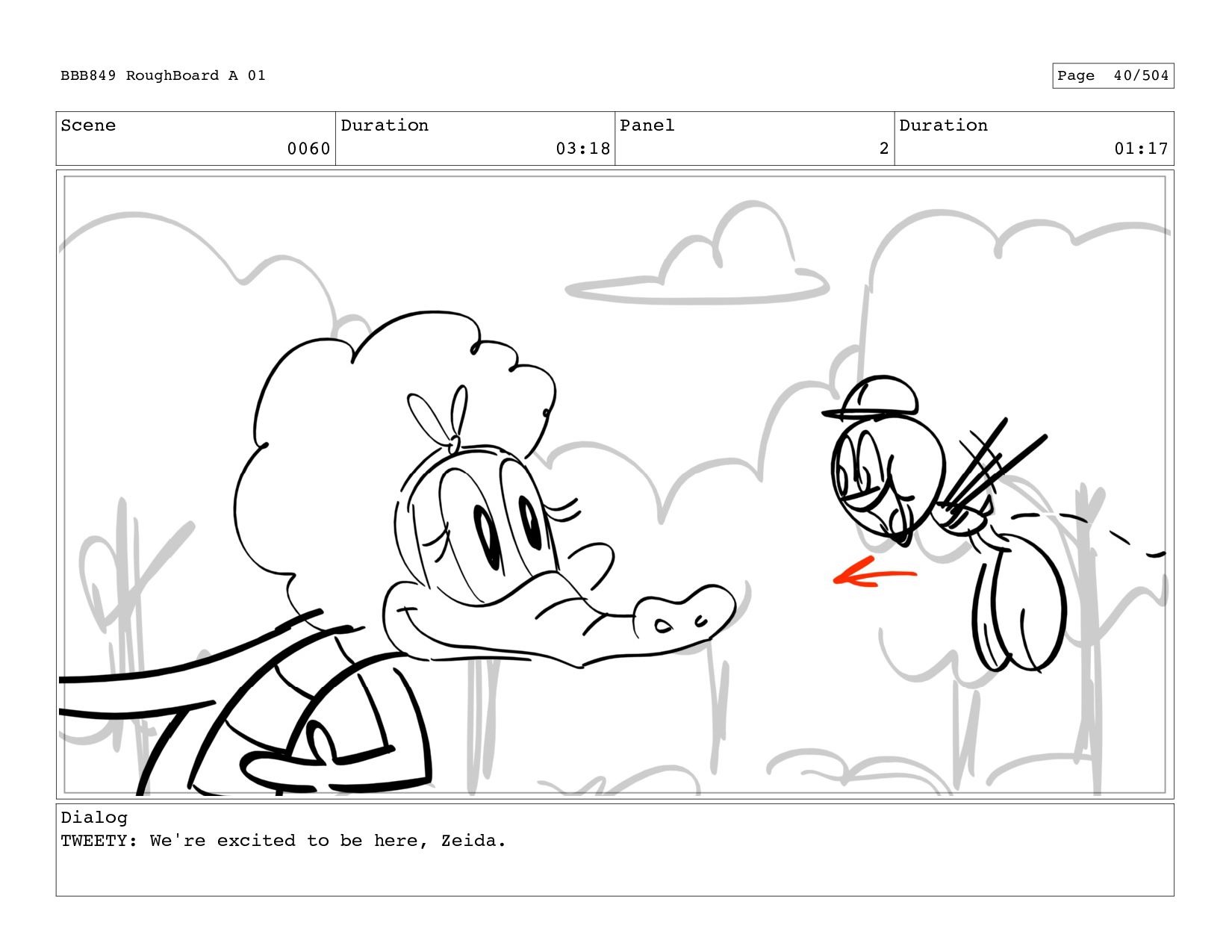 14. Scene 0060 Duration 03:18 Panel 2 Duration 01:17 Dialog TWEETY: