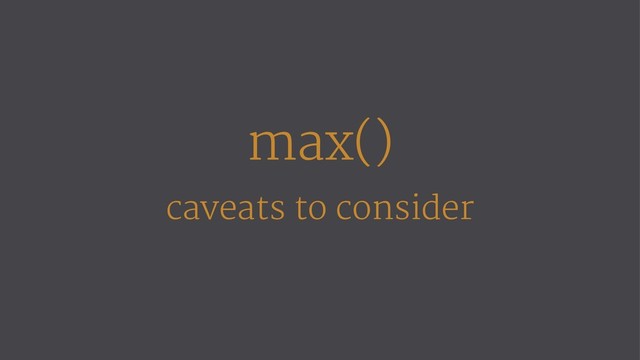 TypeError: pass # Lets write less and make it more readable max([], default=None) @eloy · python 3.6 · 2018 5/11