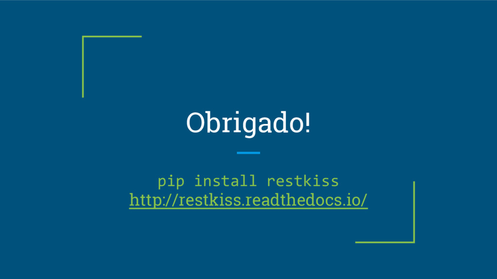 Obrigado! pip install restkiss http://restkiss.readthedocs.io/
