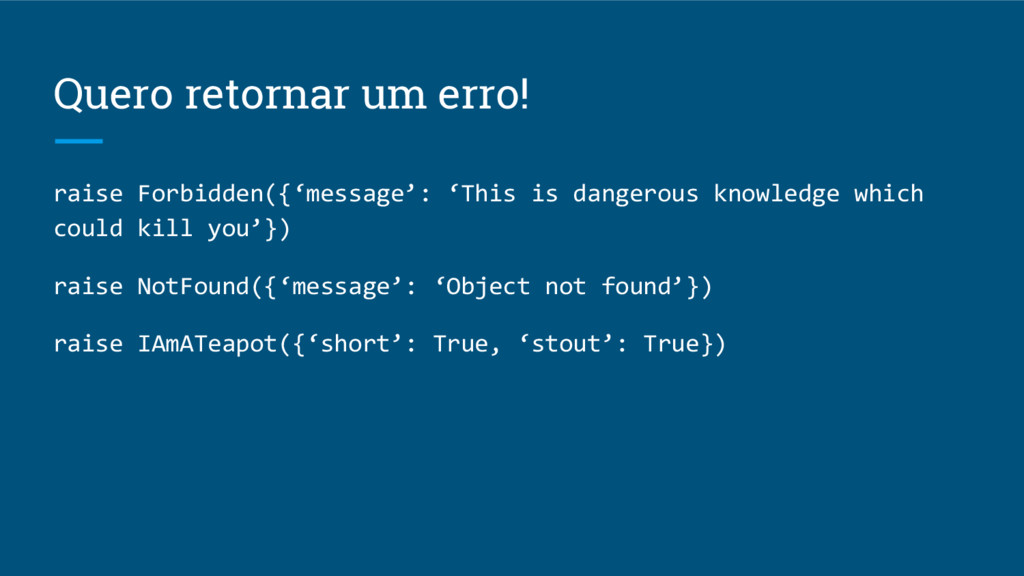 Quero retornar um erro! raise Forbidden({‘message’: ‘This is dangerous knowledge