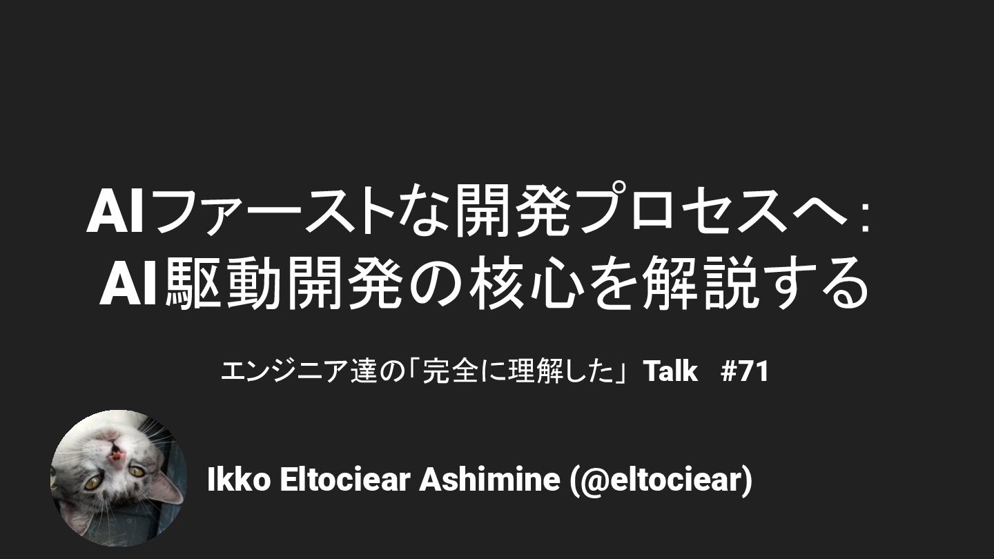 AIファーストな開発プロセスへ: AI駆動開発の核心を解説する Ikko Eltociear Ashimine (@eltociear) エンジニア達の「完全に理解した」 Talk #71