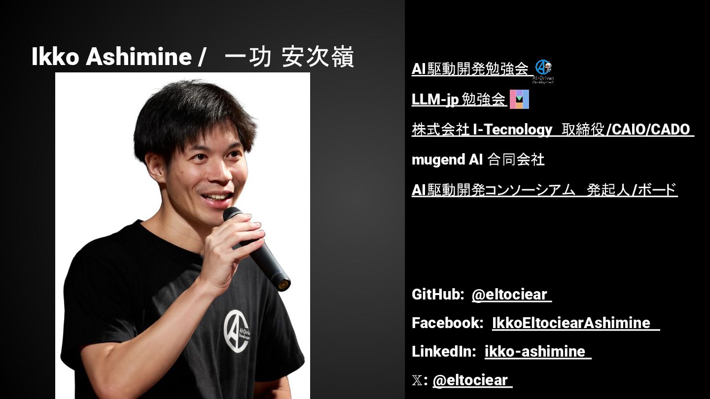 Ikko Ashimine / 一功 安次嶺 AI駆動開発勉強会 LLM-jp 勉強会 株式会社 I-Tecnology