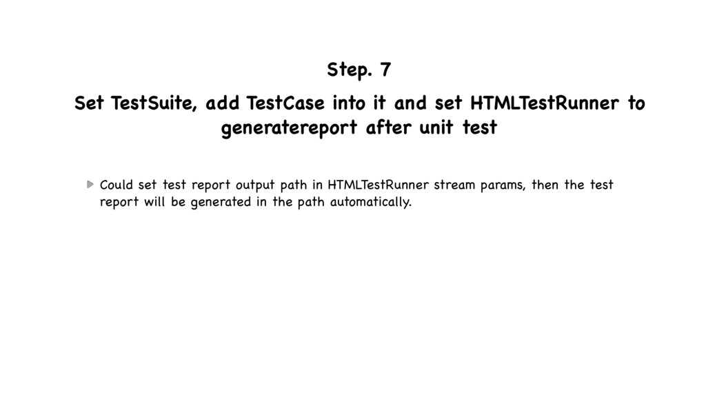 HTMLTestRunner to generatereport after unit test Could set test report output path in HTMLTestRunner stream params, then the test report will be generated in the path automatically.