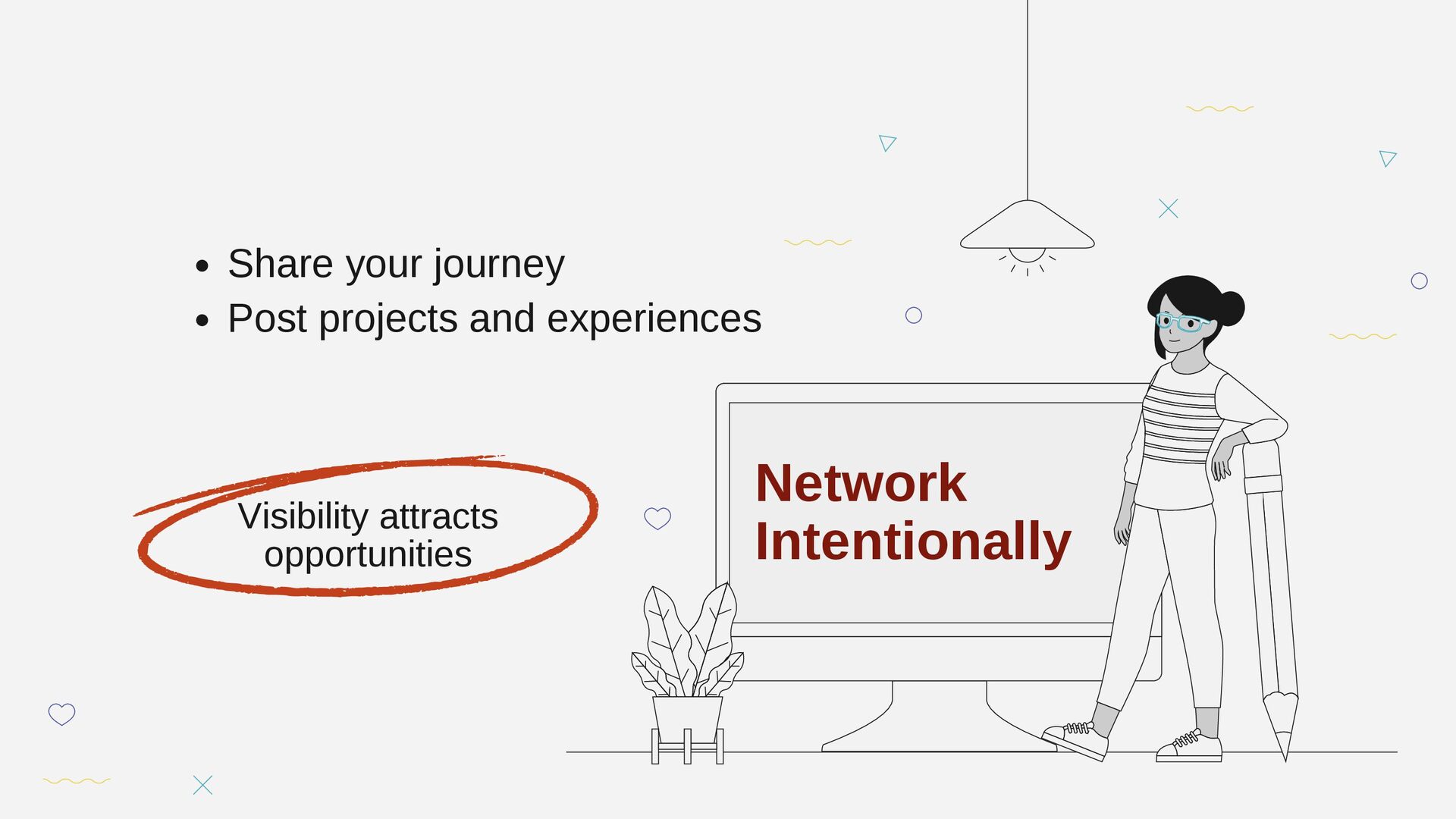 Share your journey Post projects and experiences Visibility attracts opportunities