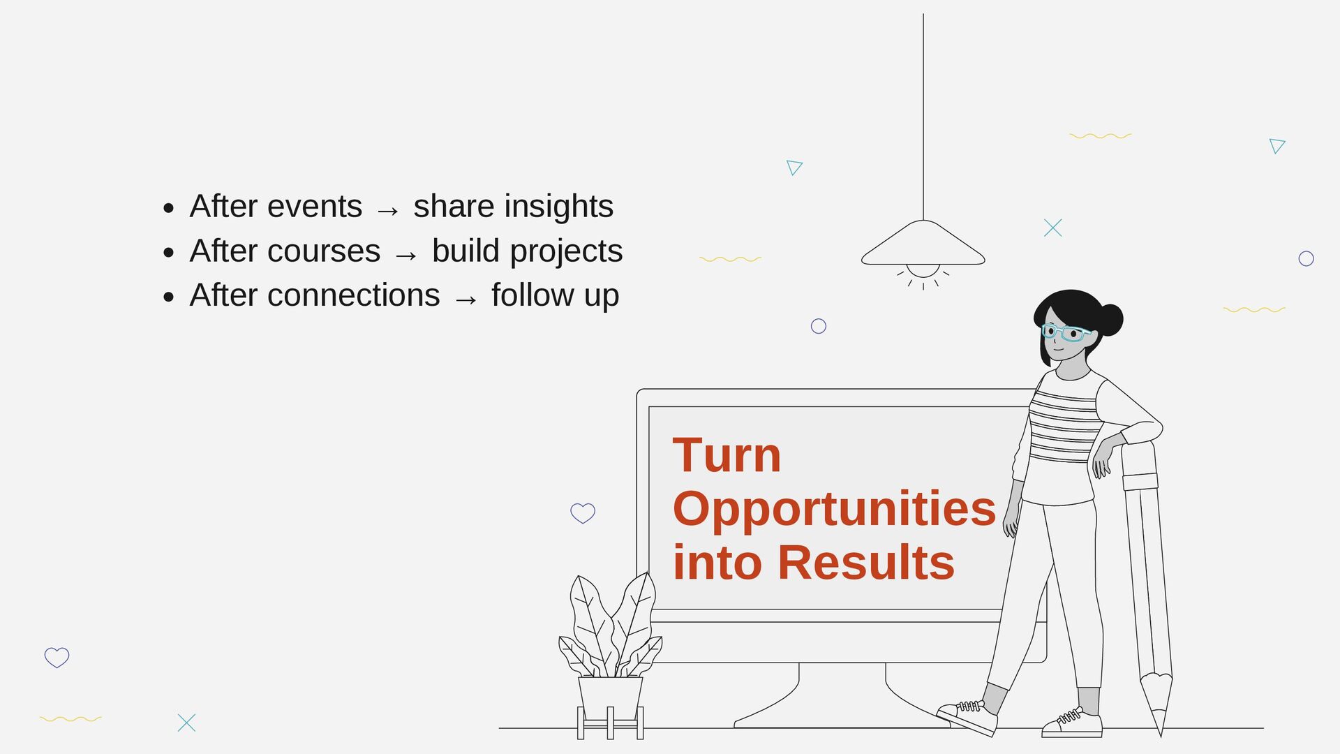 After events → share insights After courses → build projects