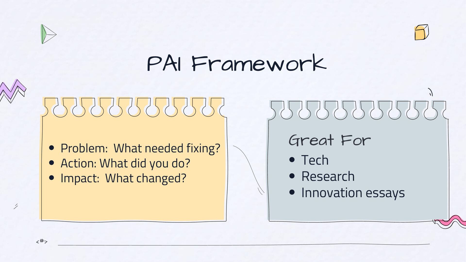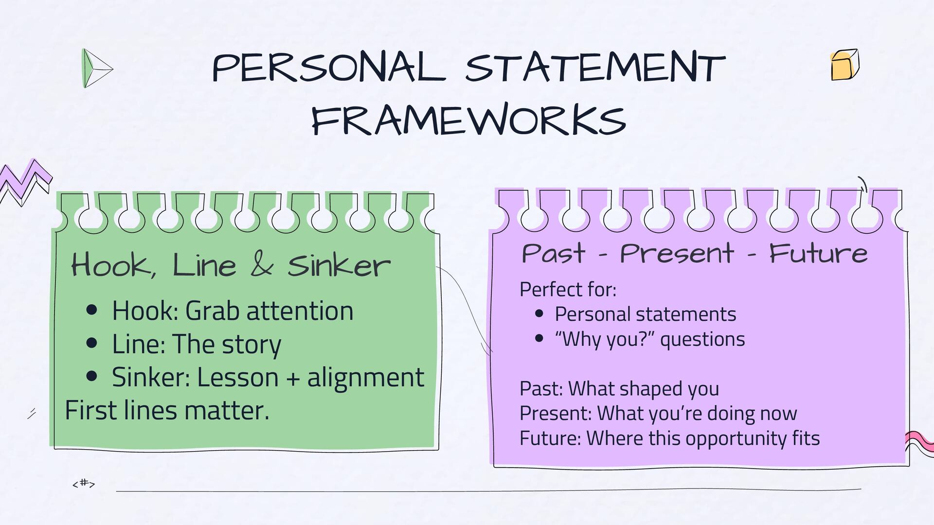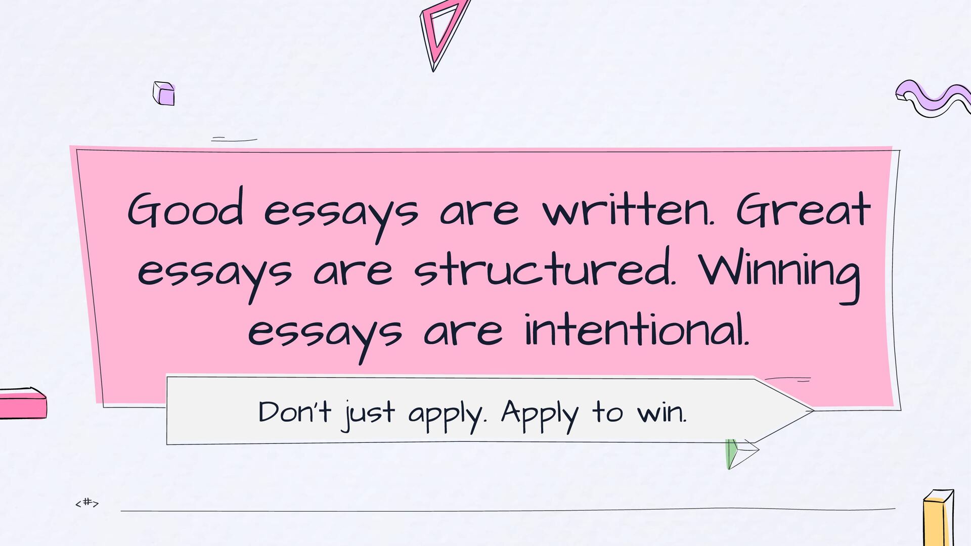 should be: Simple, Clear and Human. If they need to reread it, you’ve lost them. The “So What?” Test After every paragraph, ask: “So what? Why should they care?” The 3C Check Before submitting, check if your essay is Clear, Concrete and Compelling Voice Test Read your essay out loud and Ask: Does this sound like me? Would I say this naturally?