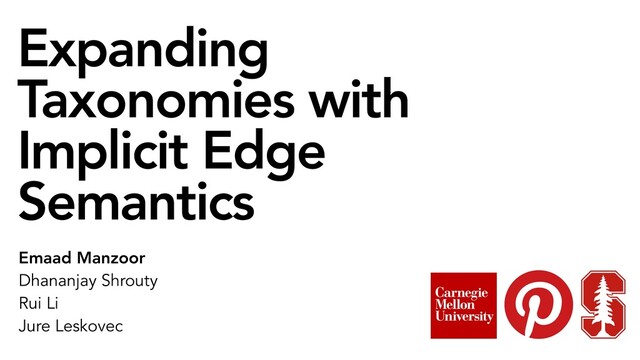 verification Taxonomic Roles with Linear Maps Large-Margin Loss with Dynamic Margins Guarantees to Ease Human Verification ge Semantics Jure Leskovec interest, Stanford University @{pinterest.com,cs.stanford.edu} %$// 1%$ 6+$4 4XHU\T H 1%$ H T 0 1%$ ,67<3(2) ,63/$<(52) ,6/($*8(2) ,03/,&,7('*(6(0$17,&6 [ V T1%$ 3 3 3 . [ Z 1%$ and (u, , ) is the desired margin dened as a function of the child, parent and non-parent nodes. We now derive the loss function to be minimized in order to satisfy the large-margin constraint (5). Denote by E(u, , 0) the degree to which a non-parent node 0 violates the large-margin constraint of child-parent pair (u, ): E(u, , 0) = max[0,s(u, 0) s(u, ) + (u, , 0)]. (6) When the large-margin constraint is satised, E(u, , 0) = 0 and the non-parent incurs no violation. Otherwise, E(u, , 0) > 0. The overall loss function L(T) is the total violation of the large- margin constraints by the non-parents corresponding to every child-parent pair (u, ): L(T) = ’ (u, )2E ’ 0 2V H(u) E(u, , 0) (7) The node embeddings w and linear-maps P1, . . . , Pk are jointly trained to minimize L(T) via gradient-descent. Given the trained parameters and a query node q < V having feature-vector eq, pre- dictions are made by ranking the taxonomy nodes in decreasing order of their taxonomic relatedness s(q, ). Using the fact that pairs and their cor L(T) Thus, minimizin on the sum of shor predictions and tr dicted parent node truth taxonomy. In ages non-parent n be scored relatively This guarantee experts; if A node, the taxonom around the predic nd the correct pa learned from the data [19]. We propose a principled dynamic margin func no tuning, learning or heuristics. We relate th shortest-path distances in the taxonomy between true parent nodes. Denote by d(·, ·) the undirec distance between two nodes in the taxonomy. W theorem, we bound the undirected shortest-path the highest-ranked predicted parent ˆ(u) = arg any true parent for every child node u: P 1. When (u, , 0) = d( , 0), L bound on the sum of the undirected shortest-path the highest-ranked predicted parents and true par ’ (u, )2E d( , ˆ(u)) L(T).