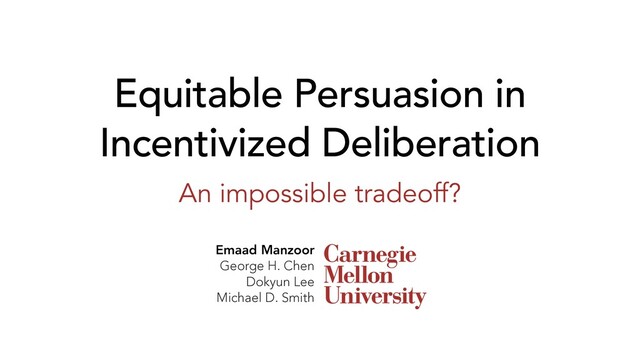 SCECR 2020 | Equitable Persuasion in Incentivized Deliberation: An Impossible Tradeoff?
