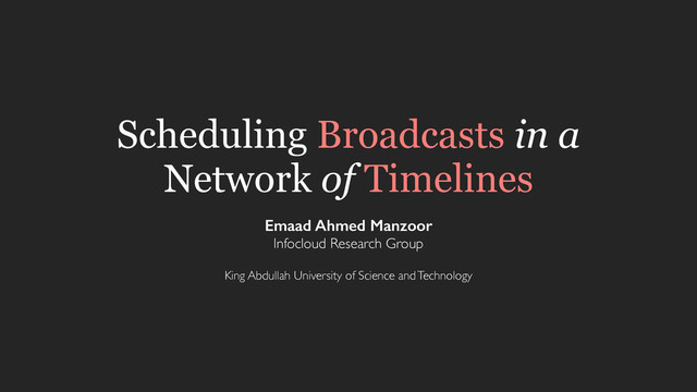 timing and frequency configuration ying both these balances. We can succinctly write this misation problem as the following nonlinear integer am: maximise X F( X , C , s, r, d) subject to  xi2 X xi N, X ✓ ZS + . ( 3 . 6 ) The broadcast scheduling problem as a nonlinear integer program. orm of the program reveals that it is an instance of onlinear knapsack problem1. Our specific objective 1 Kurt M Bretthauer and Bala Shetty. The nonlinear knapsack problem– algorithms and applications. European Journal of Operational Research, 2002 ion is non-separable: it cannot be decomposed into a r combination of functions gi(xi), separate for each nsion. Additionally, it is nonconcave in general over Nonlinear Knapsack Problem (Bretthauer, European Journal of Operational Research, ’02) The objective is non-separable, non-concave, non- quasiconcave. Our Approach An Optimisation Problem ptimal schedule maximises attention potential by ng the perfect post timing and frequency configuration ying both these balances. We can succinctly write this misation problem as the following nonlinear integer am: maximise X F( X , C , s, r, d) subject to  xi2 X xi N, X ✓ ZS + . ( 3 . 6 ) The broadcast scheduling problem as a nonlinear integer program. orm of the program reveals that it is an instance of onlinear knapsack problem1. Our specific objective 1 Kurt M Bretthauer and Bala Shetty. The nonlinear knapsack problem– algorithms and applications. European Journal of Operational Research, 2002 ion is non-separable: it cannot be decomposed into a r combination of functions gi(xi), separate for each nsion. Additionally, it is nonconcave in general over Essentially greedy hill-climbing, can be combined with random restarts. The form of the program reveals that it is an instance of the nonlinear knapsack problem1. Our specific objective 1 Kurt M Bretthauer and The nonlinear knapsack algorithms and applicati Journal of Operational Res function is non-separable: it cannot be decomposed into a linear combination of functions gi(xi), separate for each dimension. Additionally, it is nonconcave in general over the reals. This places the problem outside the realm for which efficient general algorithms have been devised. Greedily exploring the discrete state space is a common local optimisation strategy. For constrained integer pro- grams, greedy algorithms are typically applications of the method of marginal allocation. When adapted to our prob- lem, this corresponds to the following algorithm: Algorithm 1 : Marginal Allocation Input : Constraint N, initial solution X 0 2 ZS + begin Y X 0 D 0 repeat i argmaxk F( Y + e k) F( Y ) Y prev Y Y Y + e i D Y Y prev until D 0 or Ây2 Y y > N return Y prev end e k 2 ZS + is the kth unit v In each iteration, the al a single post to the slot w the maximum increase in function value. It termin adding a post to any slo the total intended posts does not improve the ob value. Essentially, this is a hil algorithm starting from solution and is guarante at an optimum, which m