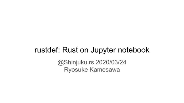 rustdef: Rust on Jupyter notebook @Shinjuku.rs 2020/03/24 Ryosuke Kamesawa