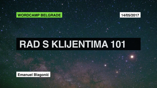 Na ovoj dvosatnoj (i malo više) radionici, probat ću vas naučiti trikove koji će vam pomoći da s klijentima razgovarate sigurnije i opuštenije, kako da naučite prepoznati potencijalne probleme i kako da na njih reagirat. Nadam se da ćete na kraju radionice imati više samopouzdanja jer ipak ste vi – web stručnjaci, koje klijent plaća da mu riješe problem.