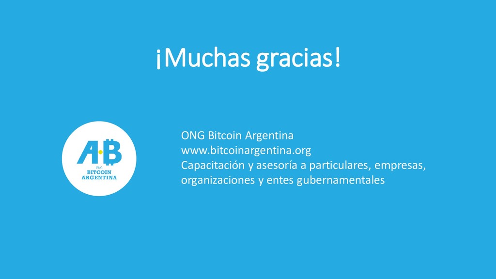 • Desarrollo de Ecosistemas Descentralizados • ONG más importante de Latinoamérica • Fundada por pioneros de Bitcoin a nivel mundial • Polo tecnológico latinoamericano en Espacio Bitcoin (Buenos Aires) • Organizadora conferencias LaBITConf desde 2013 • Elegida por el BID para llevar adelante proyectos de inclusión digital • Charlas, asesoría, capacitaciones y cursos 17/04/2018 CC BY 4.0 Esteban A. Maringolo <[email protected]>