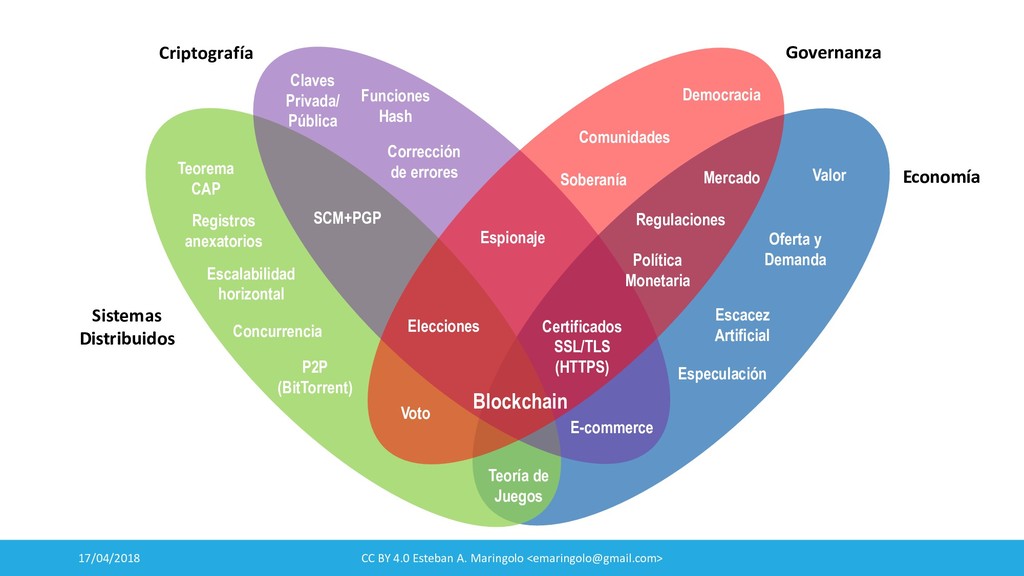 Claves Privada/ Pública Funciones Hash Corrección de errores SCM+PGP Espionaje Soberanía Comunidades Democracia Mercado Regulaciones Política Monetaria Certificados SSL/TLS (HTTPS) E-commerce Especulación Escacez Artificial Oferta y Demanda Valor Teoría de Juegos Blockchain Elecciones Sistemas Distribuidos Criptografía Governanza Economía 17/04/2018 CC BY 4.0 Esteban A. Maringolo <[email protected]>