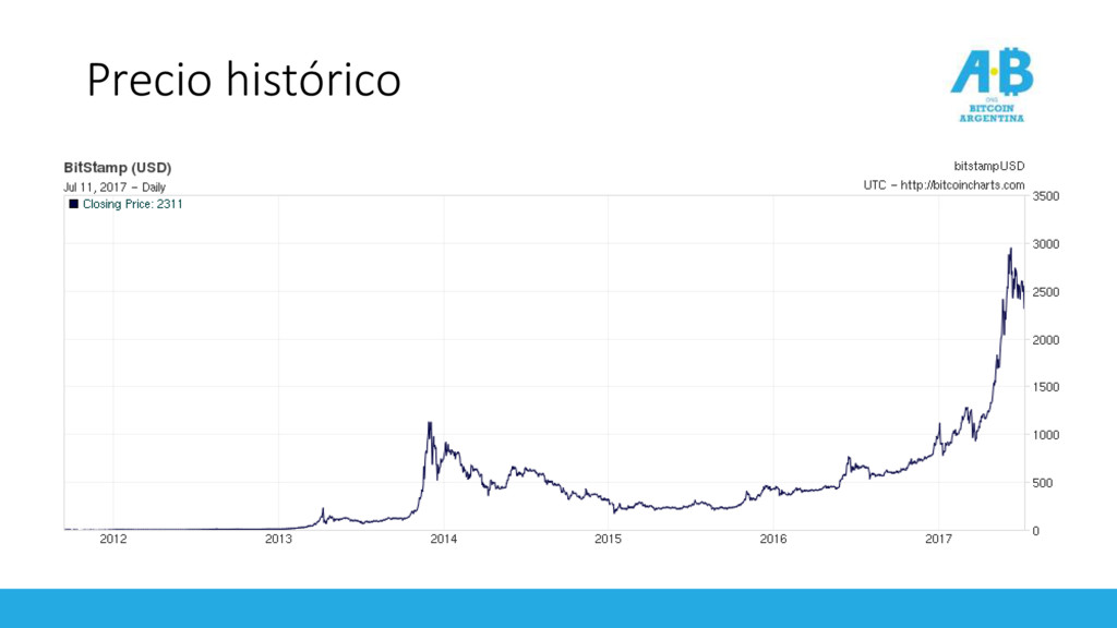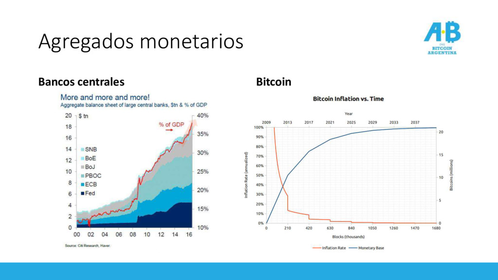 emisión en 21.000.000 BTC • 79% del total de Bitcons ya emitidos • Emisión se reduce a la mitad cada 4 años (próximo en 2020) • Actual 12.5 BTC por bloque, 1728 BTC diarios • Inflación monetaria actual: 3.92% anual