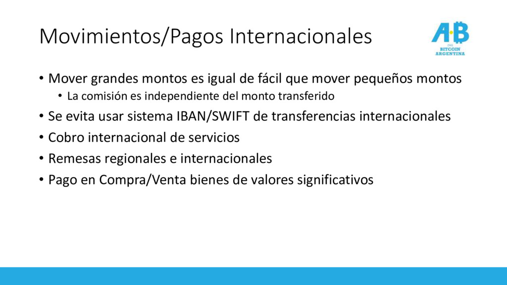 que mover pequeños montos • La comisión es independiente del monto transferido • Se evita usar sistema IBAN/SWIFT de transferencias internacionales • Cobro internacional de servicios • Remesas regionales e internacionales • Pago en Compra/Venta bienes de valores significativos