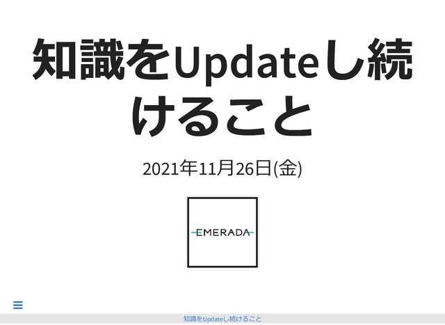 知識をUpdateし続 知識をUpdateし続 けること けること 2021年11月26日(金) 知識をUpdateし続けること