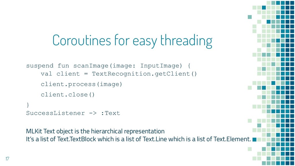 Elizabeth's talk will unveil the latest version of the RoloScan open-source, now migrated to Kotlin and moved from the Firebase APIs to the new MLKit packages.