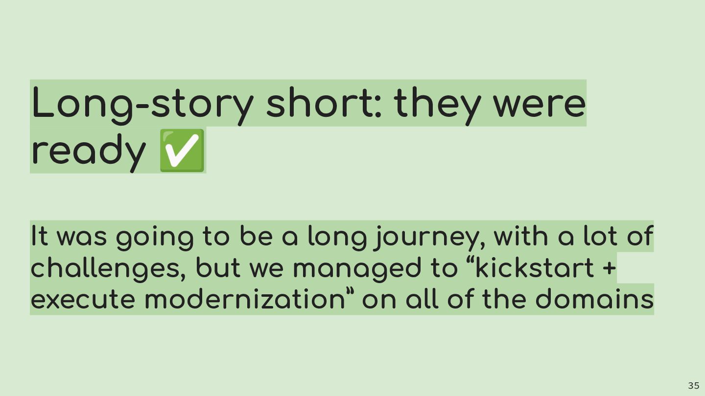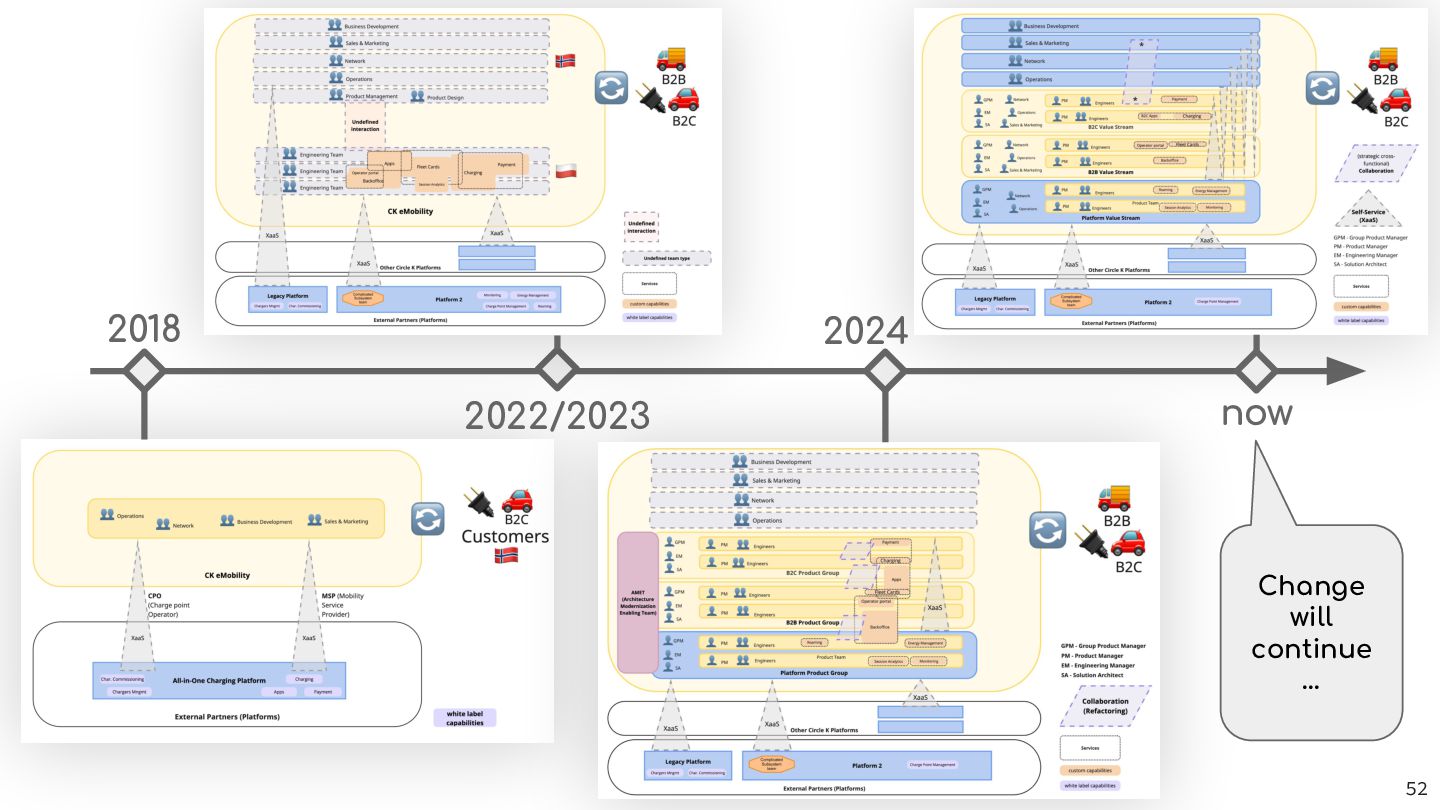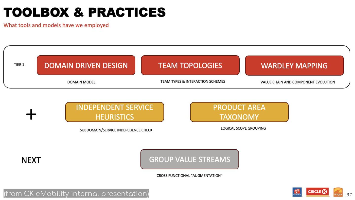 We have employed various ideas and techniques, including Domain-Driven Design, Team Topologies, Wardley Mapping, and others. However, you will see that there are no silver bullets. The secret is embracing this as a continuous improvement process, involving people with knowledge and expertise, maximizing learning, and empowering value streams and their teams to drive the necessary design and decision-making with a clear long-term vision.