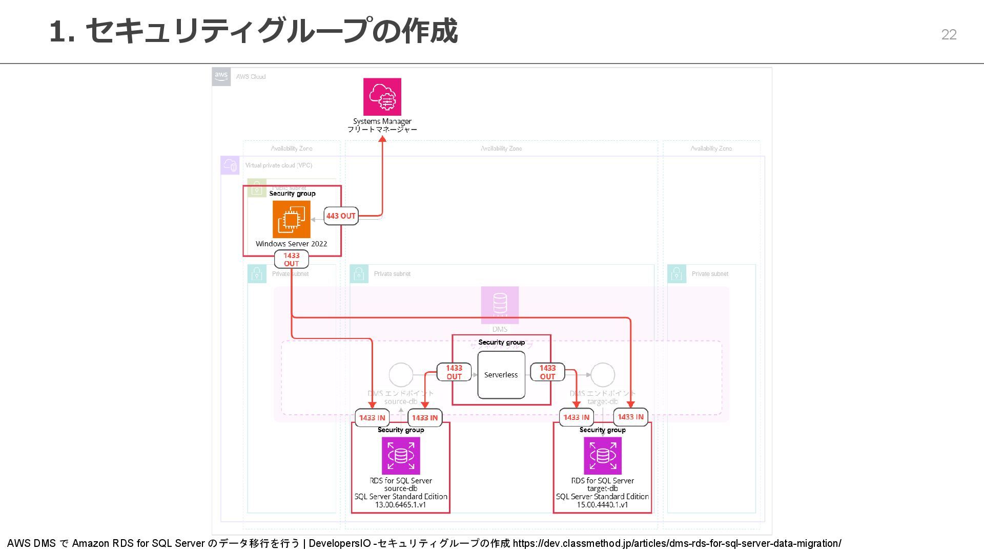 14. 22 1. セキュリティグループの作成 AWS DMS で Amazon RDS for SQL