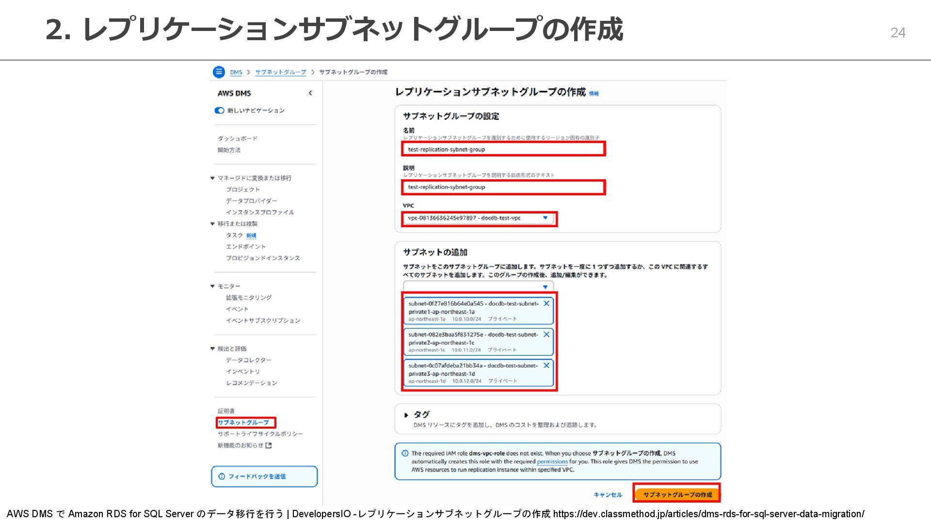 Server のデータ移行を行う | DevelopersIO -レプリケーションサブネットグループの作成 https://dev.classmethod.jp/articles/dms-rds-for-sql-server-data-migration/