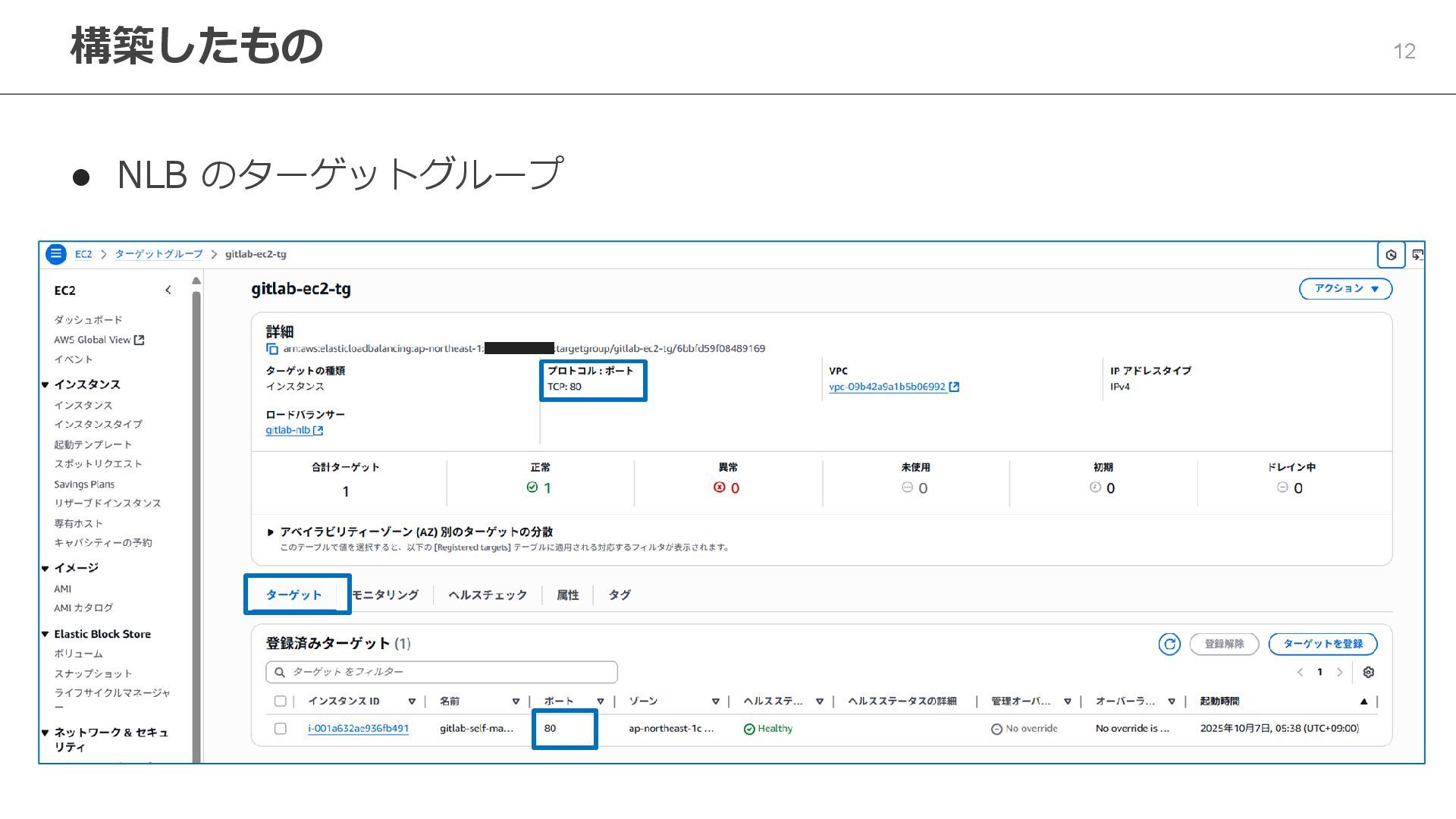 12 ⚫ NLB のターゲットグループ 構築したもの