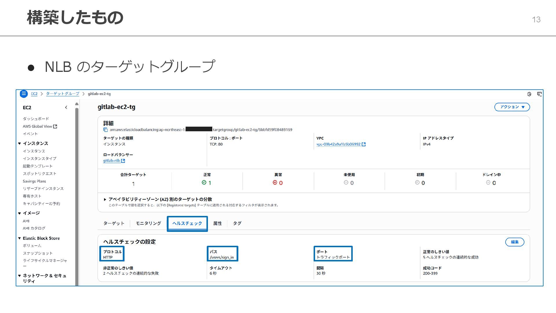 13 ⚫ NLB のターゲットグループ 構築したもの