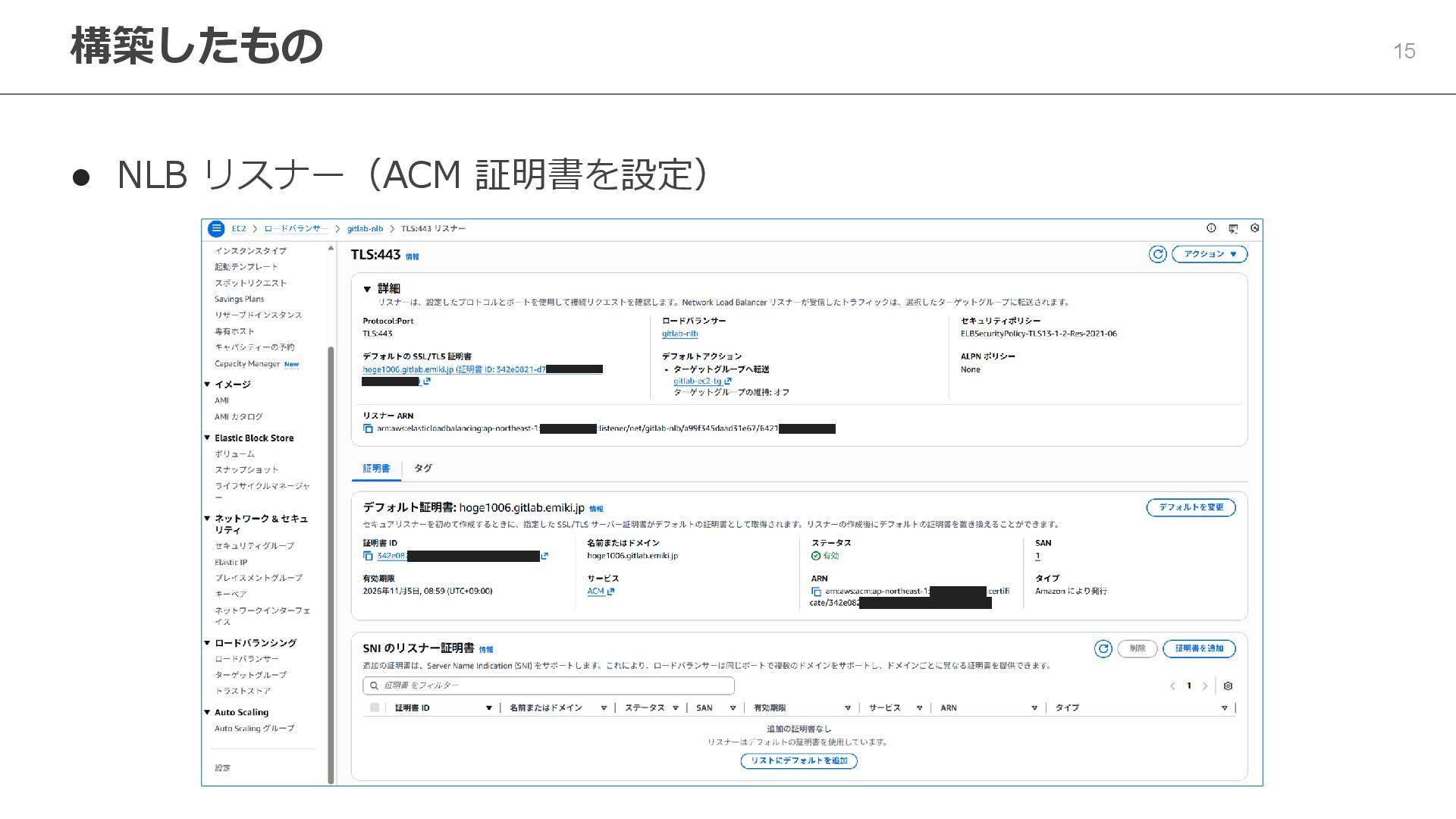 15 ⚫ NLB リスナー(ACM 証明書を設定) 構築したもの