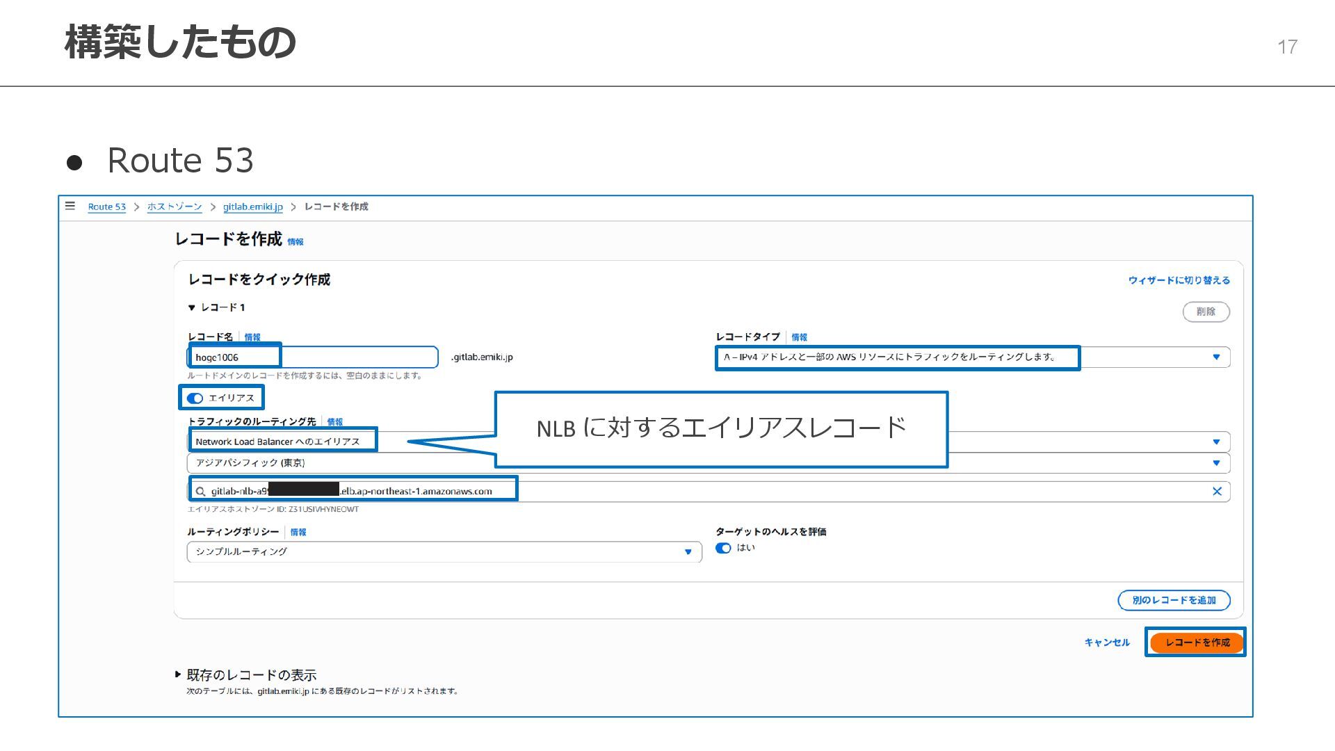 17 ⚫ Route 53 構築したもの NLB に対するエイリアスレコード