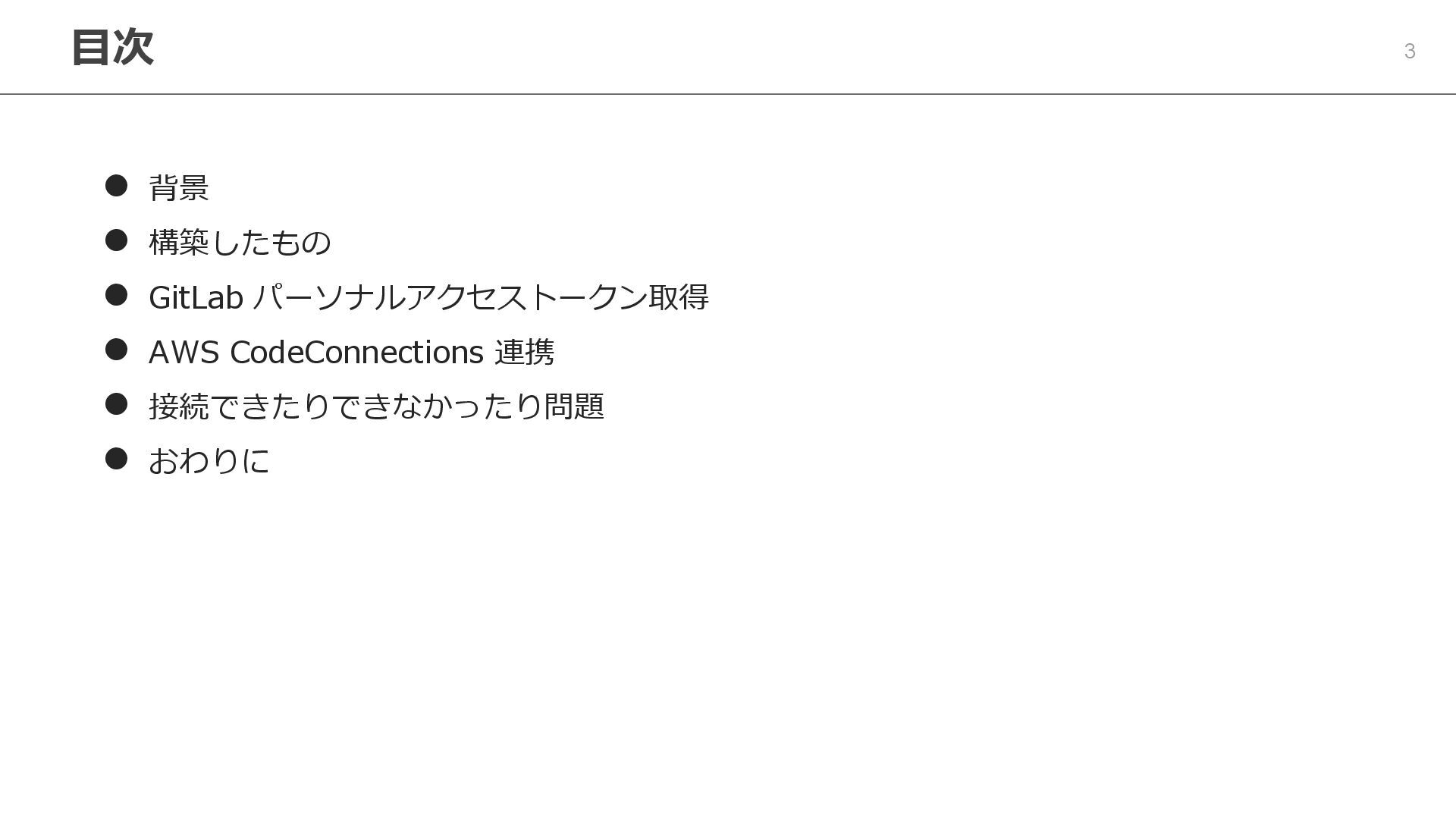 AWS CodeConnections 連携 29 ⚫ 背景 ⚫ 構築したもの ⚫ GitLab