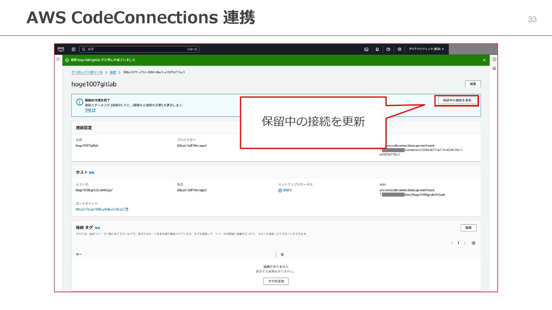 33 AWS CodeConnections 連携 保留中の接続を更新