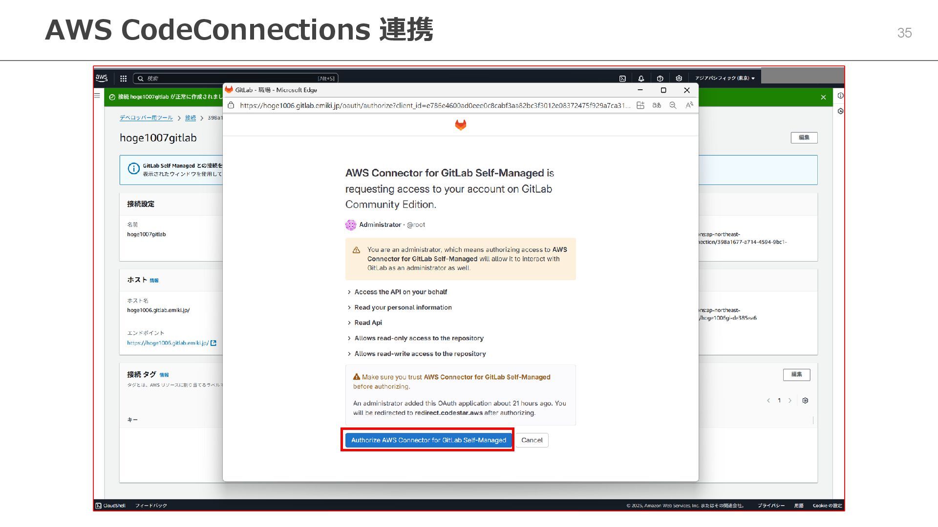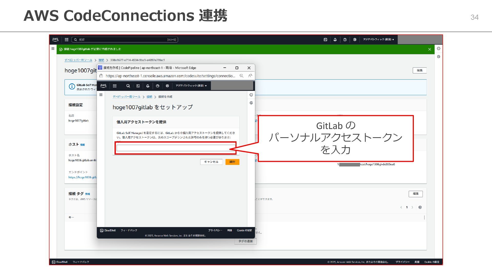 34 AWS CodeConnections 連携 GitLab の パーソナルアクセストークン を入力