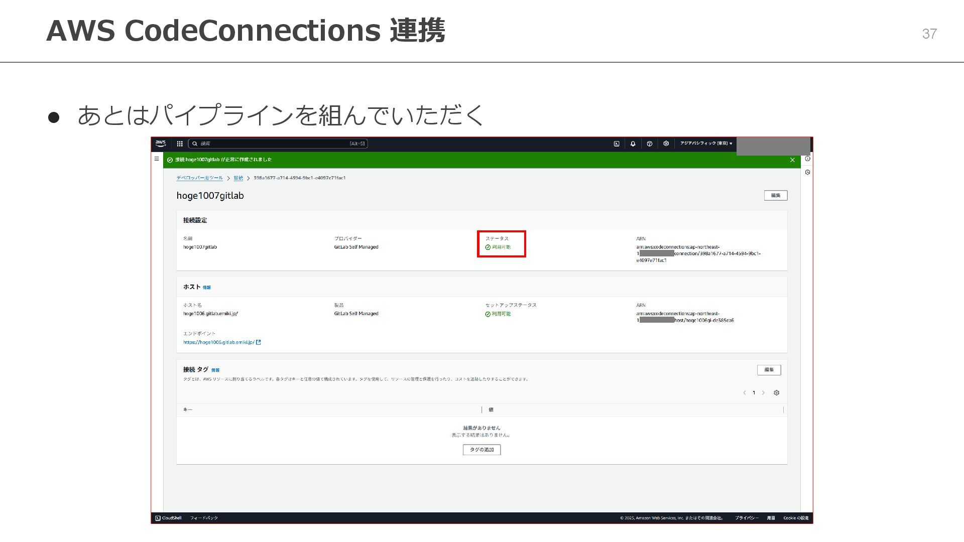 37 ⚫ あとはパイプラインを組んでいただく AWS CodeConnections 連携