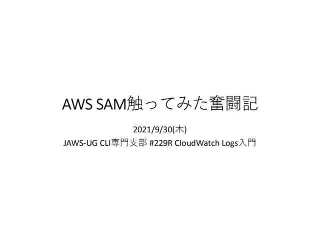 2021/9/30(木) JAWS-UG CLI専門支部 #229R CloudWatch Logs入門でのLTで発表したスライドです。「AWS SAMって何?」の状態から、なんとなく概要がつかめるようになるまでの奮闘記です。