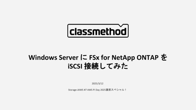 30 • ④. Windows Server:作成した LUN をマウント • Windows Server に作成した LUN を iSCSI マウントするためのスクリプトが提供されている #iSCSI IP addresses for Preferred and Standby subnets $TargetPortalAddresses = @("iscsi_1","iscsi_2") #iSCSI Initator IP Address (Local node IP address) $LocaliSCSIAddress = "ec2_ip" #Connect to FSx for NetApp ONTAP file system Foreach ($TargetPortalAddress in $TargetPortalAddresses) { New-IscsiTargetPortal -TargetPortalAddress $TargetPortalAddress -TargetPortalPortNumber 3260 -InitiatorPortalAddress $LocaliSCSIAddress } #Add MPIO support for iSCSI New-MSDSMSupportedHW -VendorId MSFT2005 -ProductId iSCSIBusType_0x9 #Set the MPIO path configuration for new servers to ensure that MPIO is properly configured and visible in the disk properities. Set-MPIOSetting -NewPathVerificationState Enabled #Establish iSCSI connection 1..8 | %{Foreach($TargetPortalAddress in $TargetPortalAddresses) {Get-IscsiTarget | Connect-IscsiTarget -IsMultipathEnabled $true -TargetPortalAddress $TargetPortalAddress -InitiatorPortalAddress $LocaliSCSIAddress -IsPersistent $true}} #Set the MPIO Policy to Round Robin Set-MSDSMGlobalDefaultLoadBalancePolicy -Policy RR iscsi_1(前の手順で取得した iSCSI IP①) iscsi_2(前の手順で取得した iSCSI IP②) ec2_ip(マウントする Windows Server のプライベート IP) ※発表では省略します