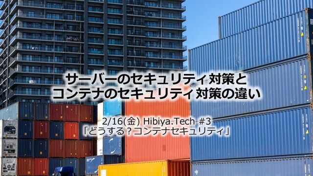 サーバーのセキュリティ対策と コンテナのセキュリティ対策の違い 2/16(金) Hibiya.Tech #3 「どうする?コンテナセキュリティ」