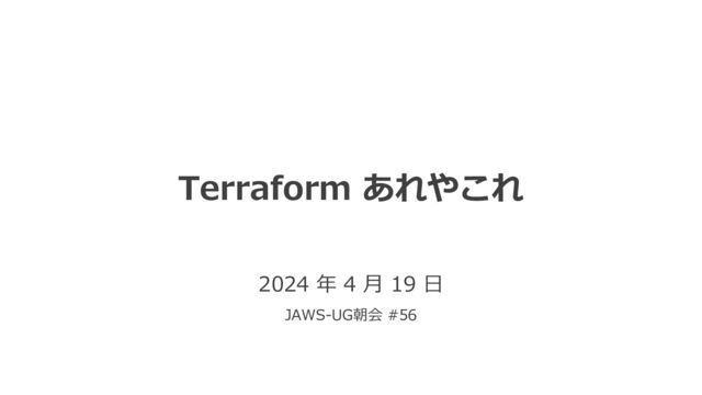 Terraform あれやこれ 2024 年 4 月 19 日 JAWS-UG朝会 #56