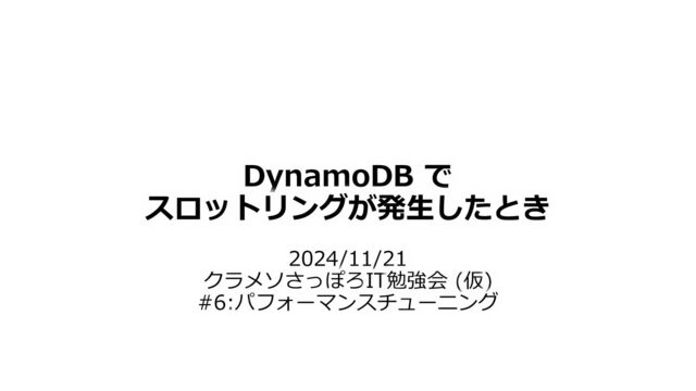 2024/11/21(木) クラメソさっぽろIT勉強会 (仮) #6:パフォーマンスチューニング https://classmethod.connpass.com/event/333630/