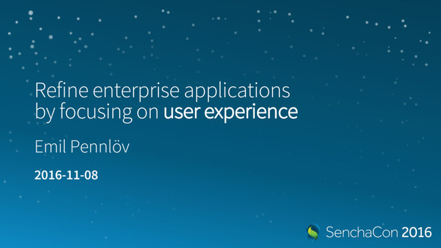 When looking at large scale and data heavy enterprise applications, we often notice a lack of user experience (UX) design. People today are spoiled with user friendly and modern applications to aid them in their daily tasks for everything from shopping to social networking to ordering a cab; however, they don’t get the same user friendly experience in their work applications. An important challenge for enterprise application developers is that users now expect the same excellent user experience in their work applications as they have in their personal ones. The enterprise market has long been behind the consumer market, but the gap is closing. Ext JS is a superb framework for developing data heavy applications, and it provides a large set of user friendly and customizable components to manage and visualize enterprise data. Furthermore, Ext JS provides the tools you need to build custom and reusable components that will take your applications to the next level. In this session, we will look at how we at Orango have used Ext JS together with Enterprise Resource Planning (ERP) systems to develop user friendly and modern applications for all platforms. We will also look at real-world examples of custom Ext JS components that are built to provide a great user experience, but also with code maintenance and refactoring in mind. After this session, you will have the tools and knowledge to spoil your enterprise users with excellent user experience.