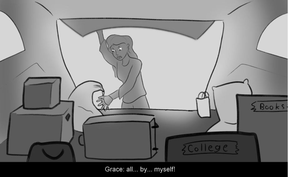 Based on a personal experience, a college student has just arrived to campus and has to unload her car after an unexpected heartbreak.