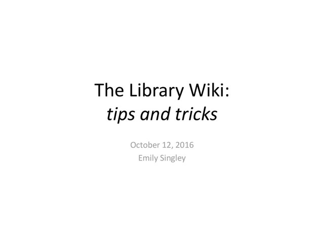 and favorite pages Your user page and personal space The dashboard Creating wiki content Formatting Using tables Inserting links and media Using templates Fun with macros Table of contents Task lists Diagrams – Gantt charts, flowcharts Reusable content Wiki permissions How to restrict wiki pages