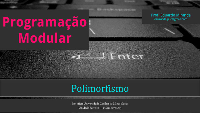 Slides utilizados em aula na disciplina Programação Modular do Instituto de Ciências Exatas e Informática - Sistemas de Informação. Pontifícia Universidade Católica de Minas Gerais - Unidade Barreiro, 1º Semestre 2015.