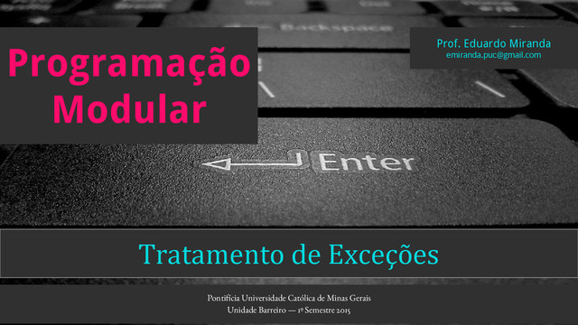 Slides utilizados em aula na disciplina Programação Modular do Instituto de Ciências Exatas e Informática - Sistemas de Informação. Pontifícia Universidade Católica de Minas Gerais - Unidade Barreiro, 1º Semestre 2015.
