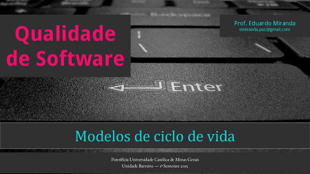 Slides utilizados em aula na disciplina Qualidade de Software do Instituto de Ciências Exatas e Informática - Sistemas de Informação. Pontifícia Universidade Católica de Minas Gerais - Unidade Barreiro, 1º Semestre 2015.